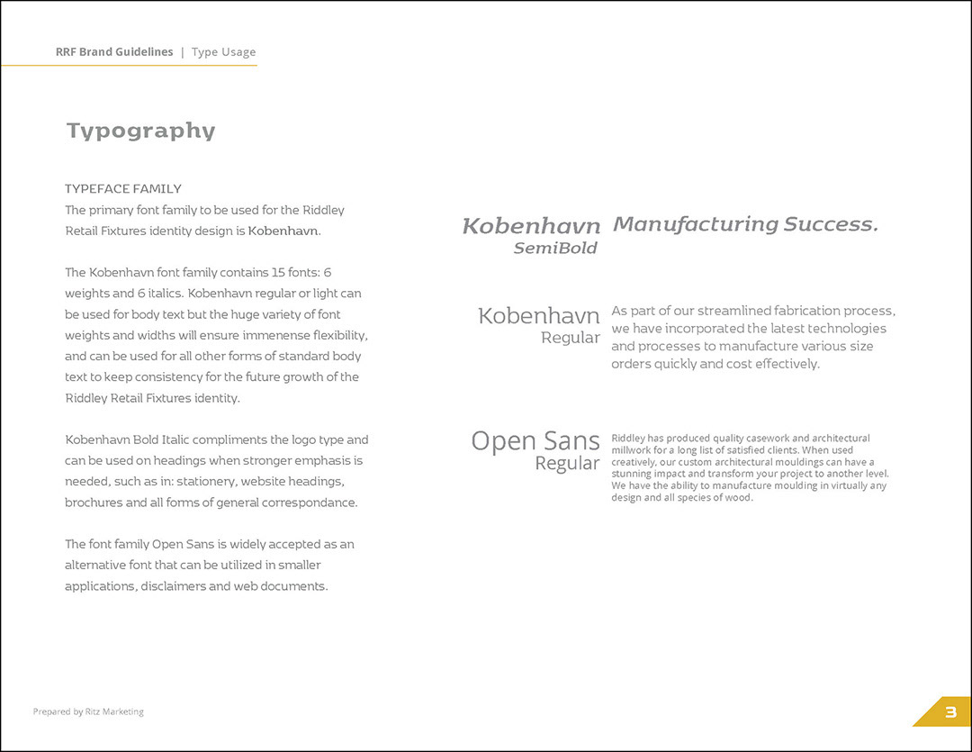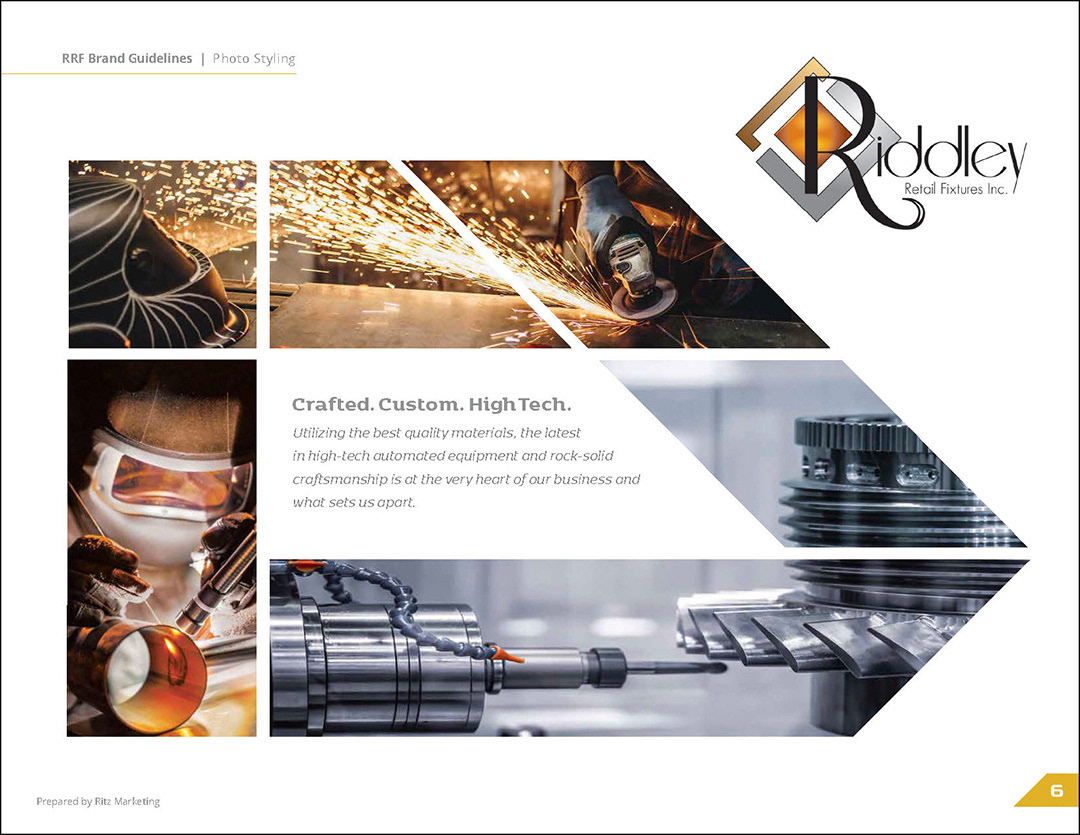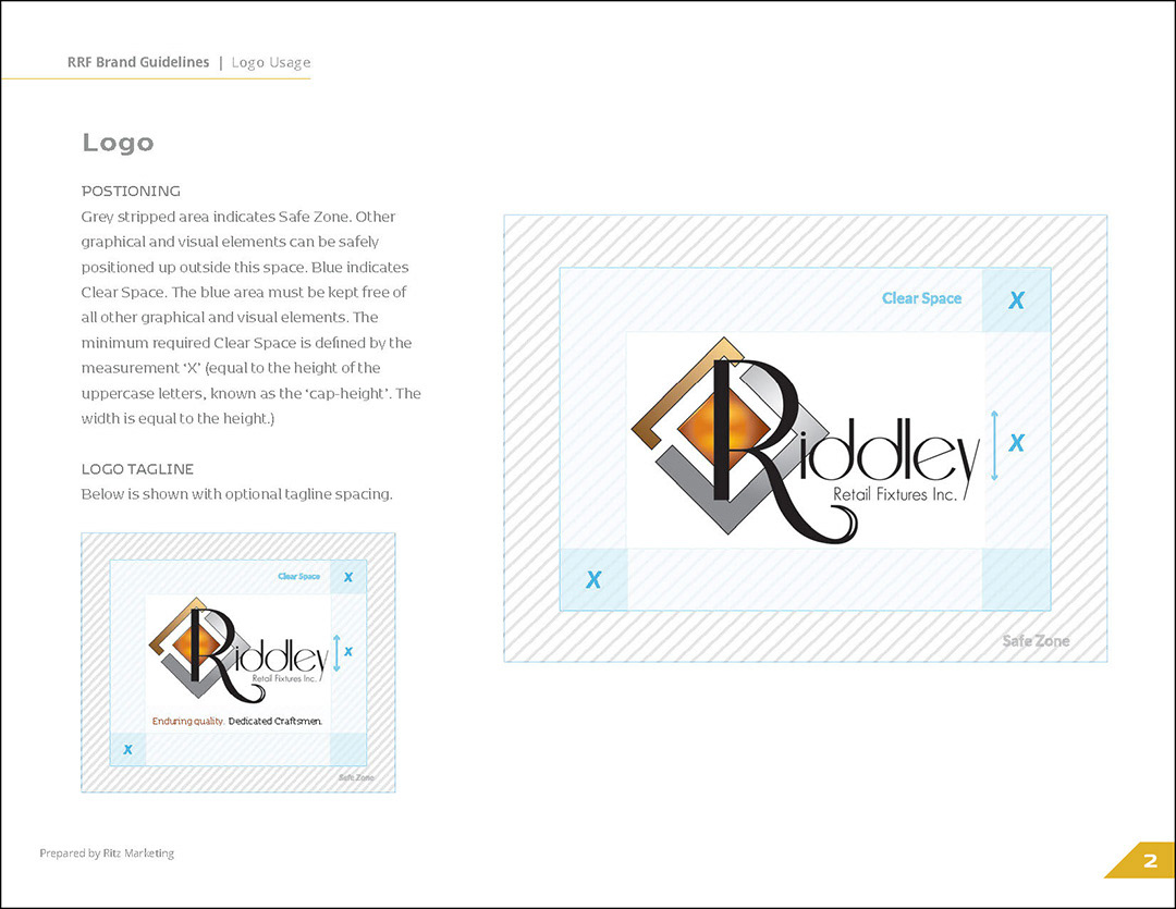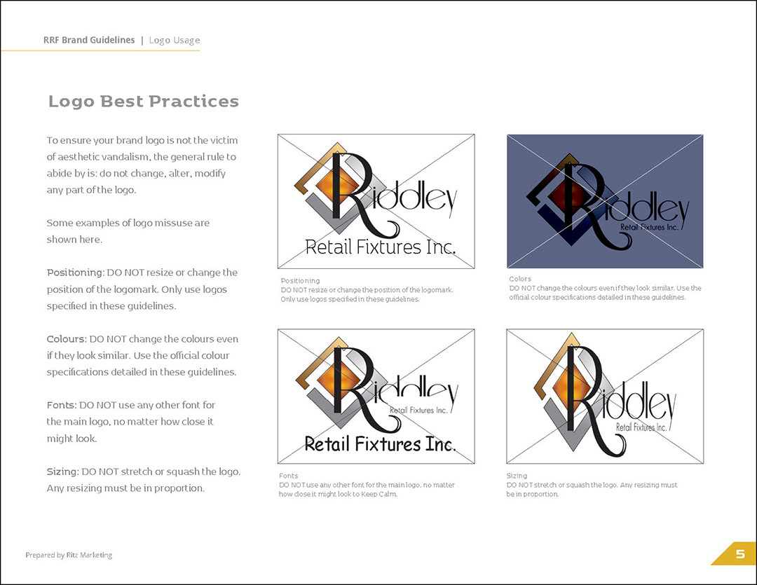 Riddley Retail Fixtures, Inc. wanted to refresh their brand but they held the existing logo very close to their hearts. I designed these guidelines with that in mind. The color palette of the logo and its angular movement inspired the results.